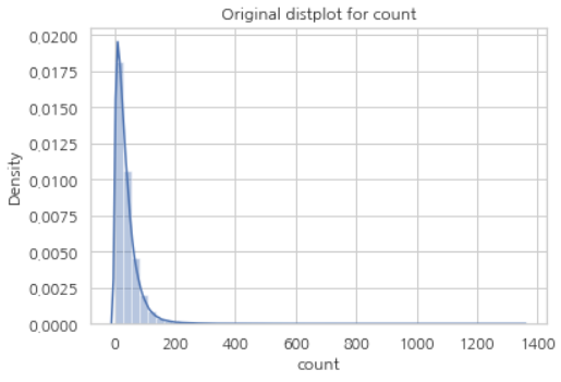 plt.title('Original distplot for count')
