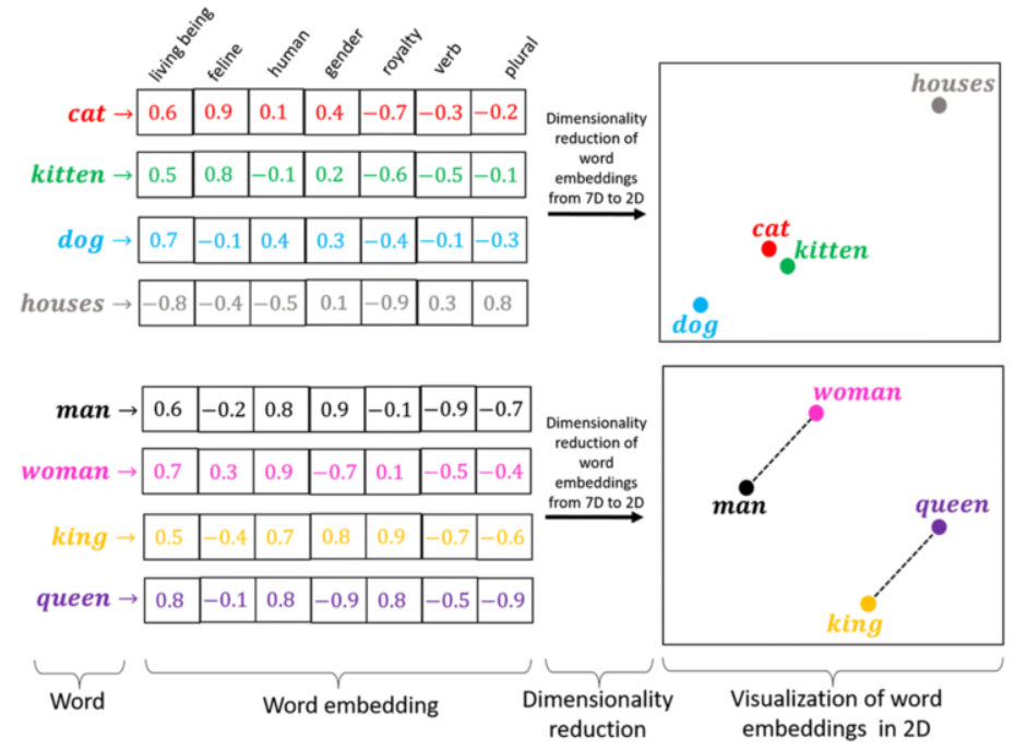 - 앞뒤 K개의 단어를 현재 단어를 통해 예측하여 해당 단어를 고정 길이의 Vector로 임베딩함 (그림 출처)