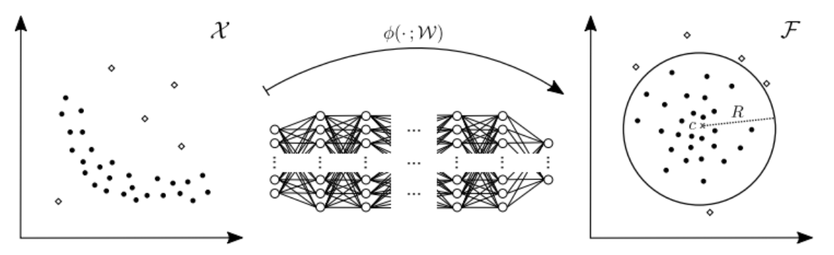 - SVDD 개념을 응용하여 딥러닝 학습에 적용함