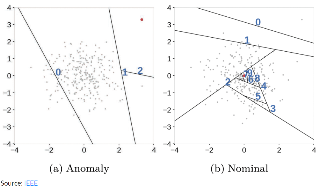 - 정상/비정상을 가르는 기준은 해당 데이터를 isolation하는 데 걸린 평균 분기 횟수