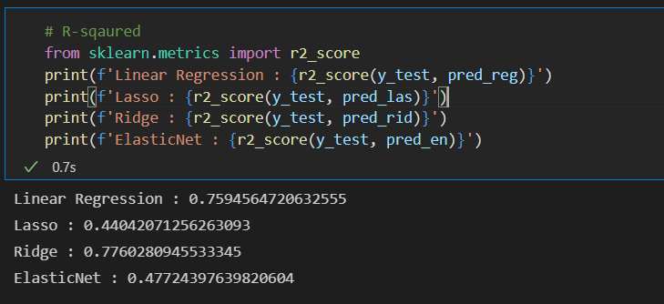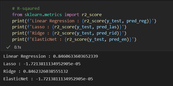 print(f'ElasticNet : {r2_score(y_test, pred_en)}')