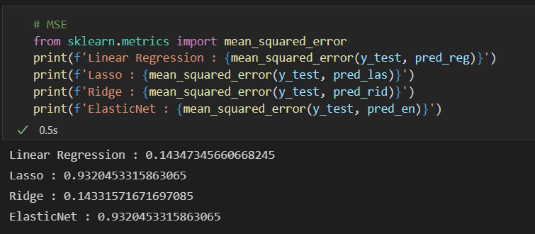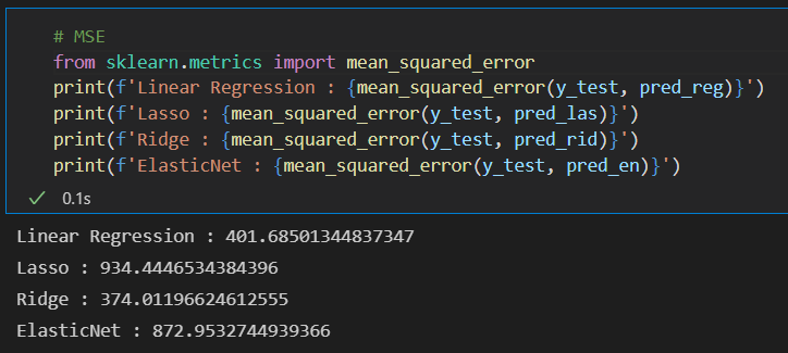 print(f'ElasticNet : {mean_squared_error(y_test, pred_en)}')