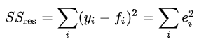 - SSR(Residual)은 우측 그림에서 점(실제값)에서 회귀선(예측값)까지의 차이의 제곱, 즉 모형에 의해 발생되는 변동성의 정도