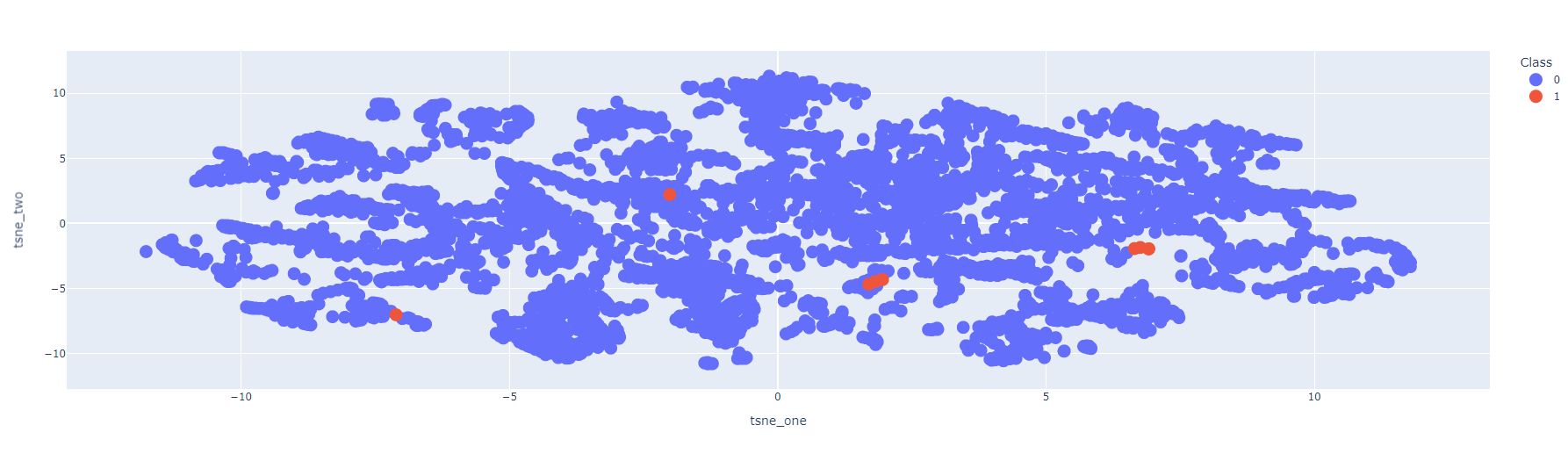fig = px.scatter(data_frame=sample, x='tsne_one', y='tsne_two', color='Class')