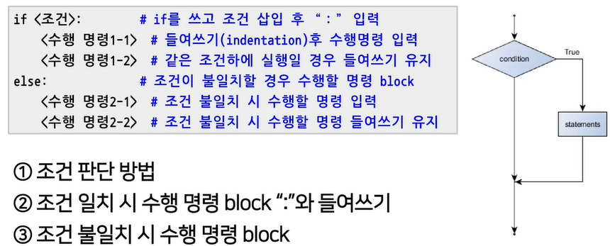 - 조건의 참, 거짓에 따라 실행해야 할 명령이 수행되거나 되지 않음