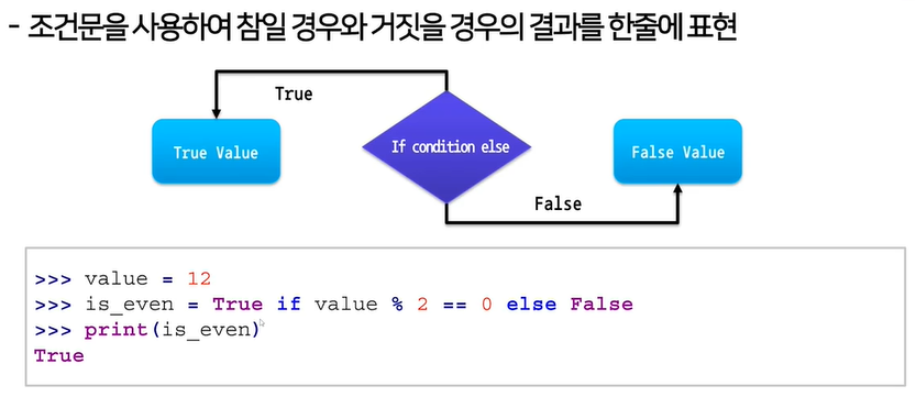 - 삼항 연산자 (Ternary operators) : 조건문을 한 줄에 표현하는 것