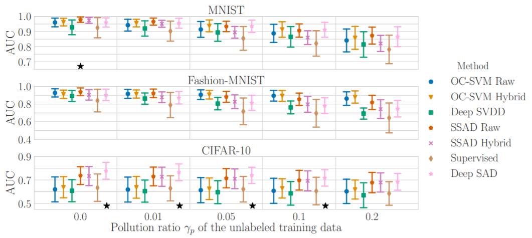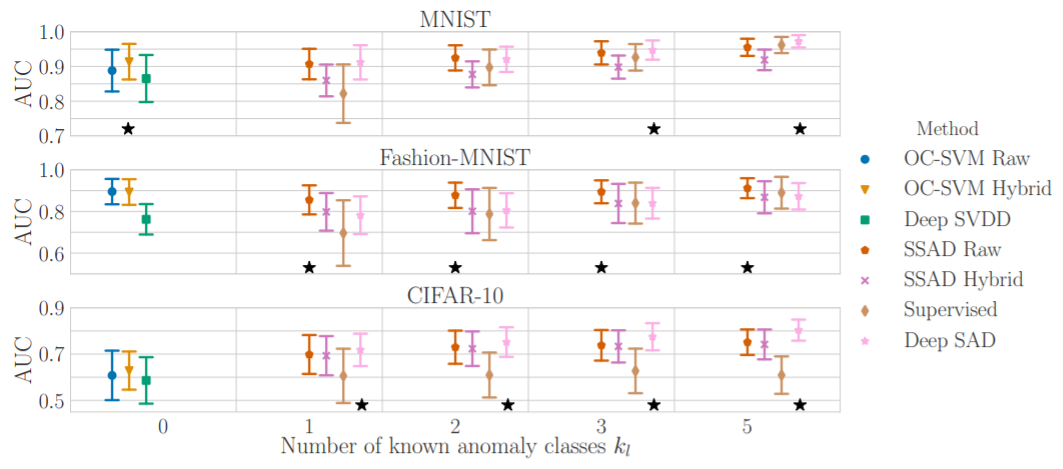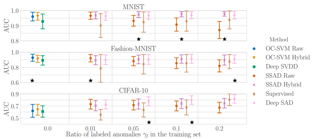 2) Deep baselines : SSAD, Deep SAD, Supervised(Binary)