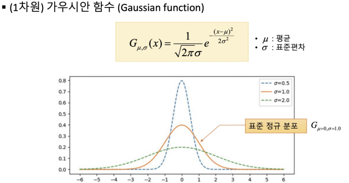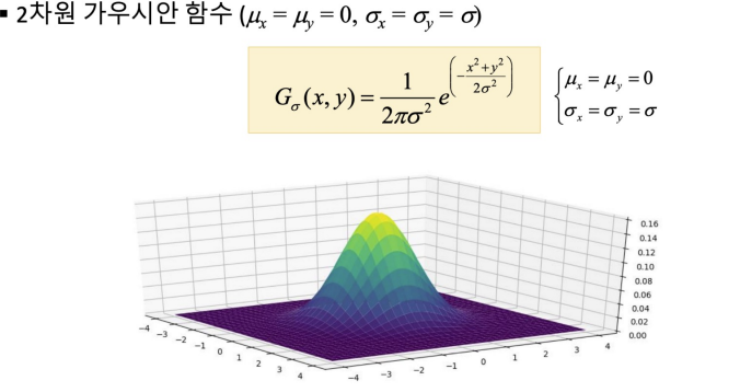 - sigma 값을 조정해서 흐릿한 정도를 변화시킬 수 있음 - sigma가 커지면 더 흐릿함