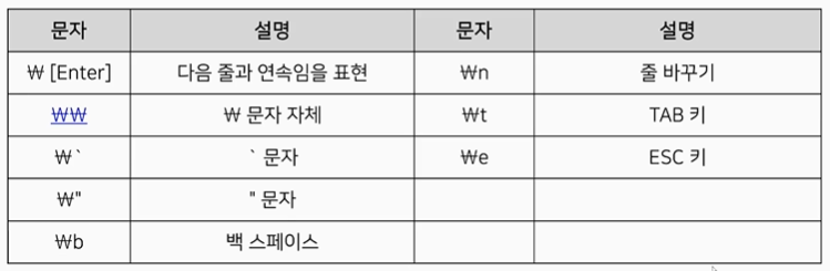 - '를 표현하고 싶으면, \'으로 표현하면 됨 (역슬래시_escape 문자)