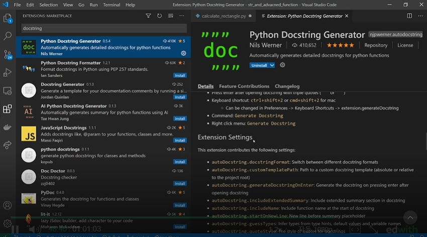 - docstring을 쓰는 방법으로 vscode의 docstring Generator 추천