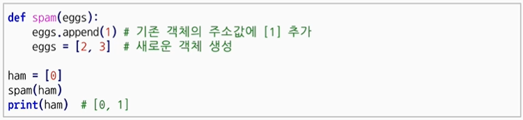 3) 객체 참조에 의한 호출 (Call by Object Reference) : 파이썬의 방식, 객체의 주소가 함수로 전달되는 방식
